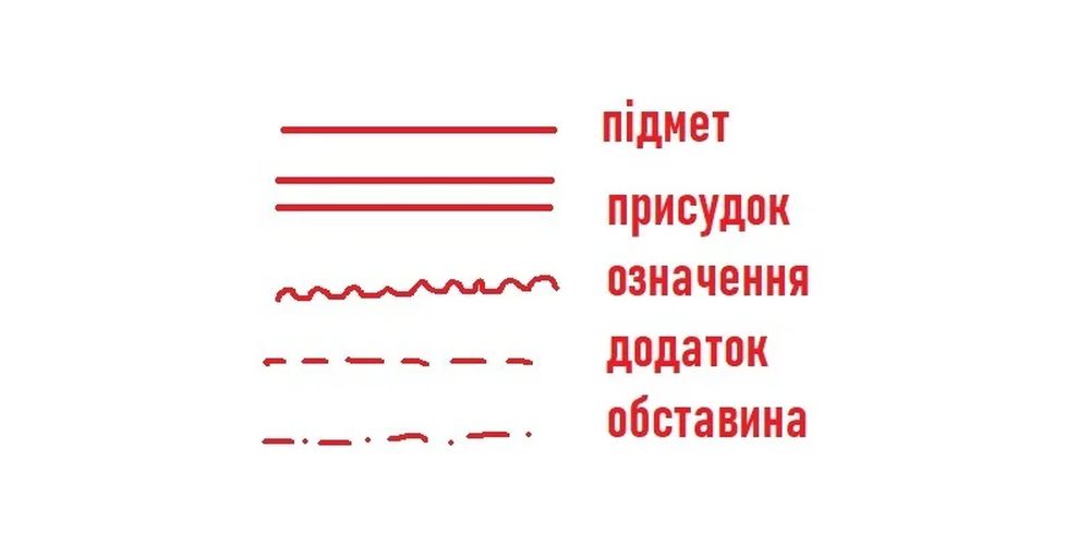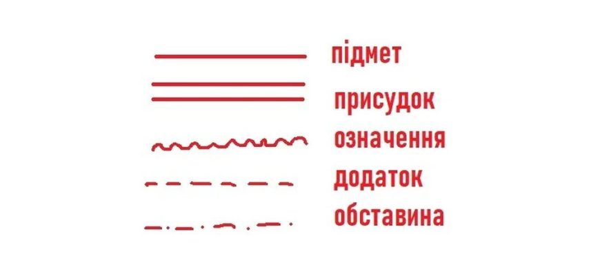 На етапі синтаксичного розбору кожен член речення має свою умовну позначку. Це не “краса оформлення”, а чітка система, яка допомагає швидко орієнтуватися.