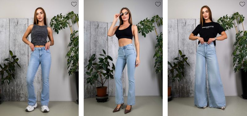 - Крій – straight, tapered або wide leg відповідає запланованим образам.