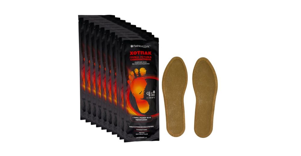 | Грілка для ніг | Розміщується у взутті або між шарами шкарпеток | 5–7 годин | Має плоску форму, не заважає руху, підтримує тепло ніг |